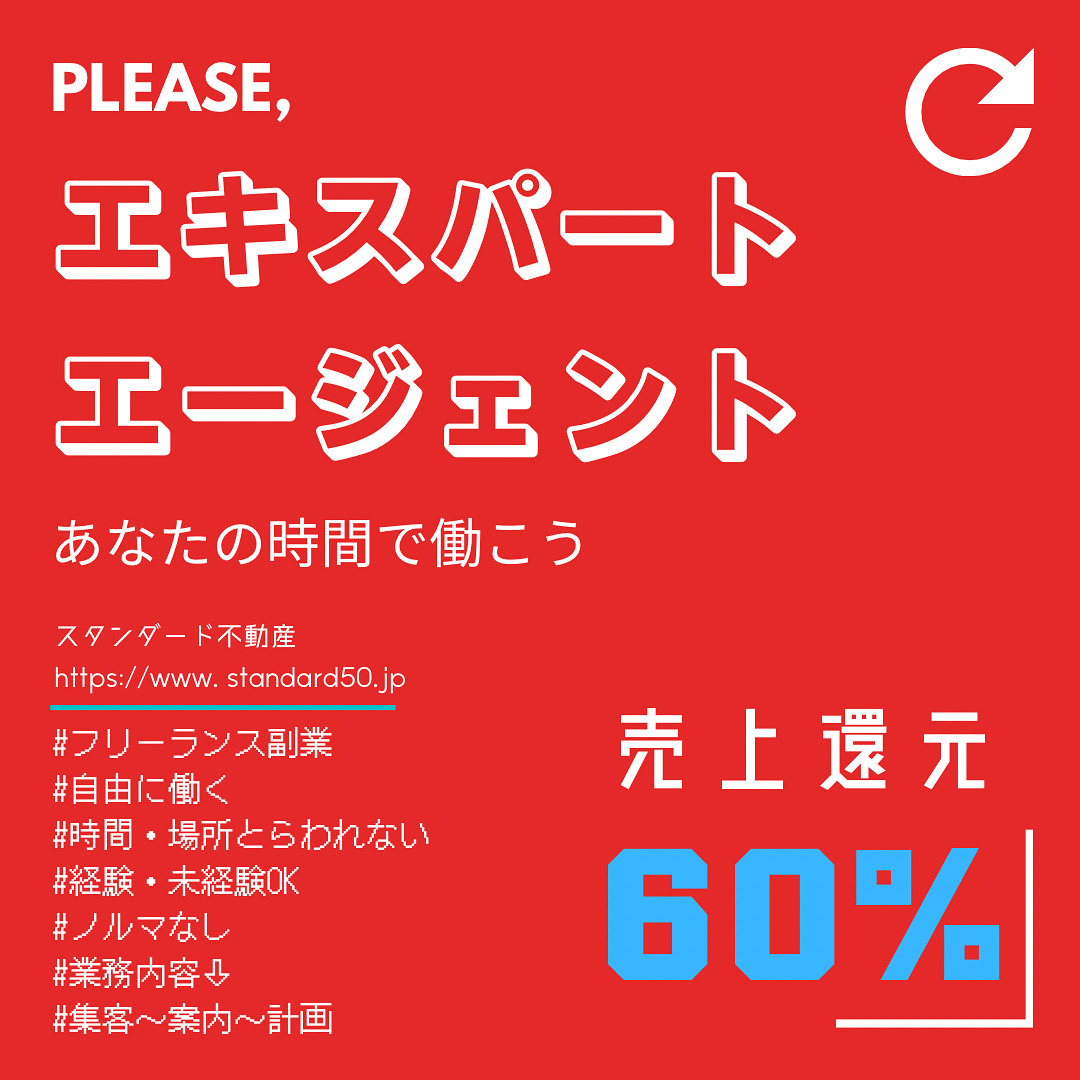 "人類みなエージェント計画" 自由に働いて収入UPしませんか? スタンダード不動産では、 不動産業でチャレンジしたい方、空いた時間を使って効率的に稼ぎたい方を募集しています! フリーランス副業で時間や場所にとらわれず、 自由にあなたの時間で働きましょう✨ ※詳細はお気軽にお問い合わせください☺︎ 大阪市北区・中央区・福島区・西区などの大阪市全域にて高級賃貸・高級マンション・高級住宅マンションのお部屋探しなら北新地周辺のスタンダード不動産へおまかせください✨ 弊社ではお客様のニーズに合わせたお部屋